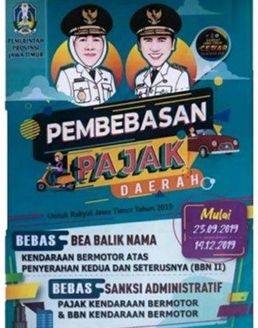 Ternyata ada dua poster, poster pertama adalah berisi pembebasan pajak kendaraan bermotor.